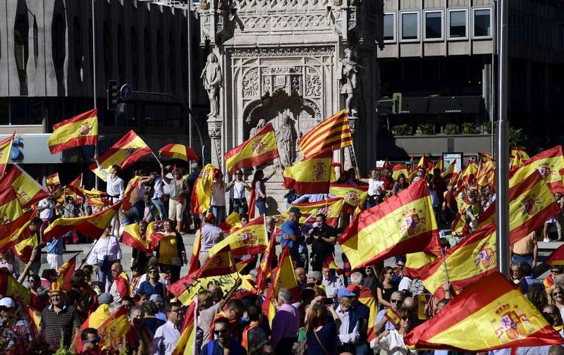 Они демонстрируют поддержку защите национального единства, конституции и верховенства закона. Также митингующие призывают лидеров Испании и Каталонии сесть за стол переговоров и найти компромисс, чтобы выйти из политического кризиса.