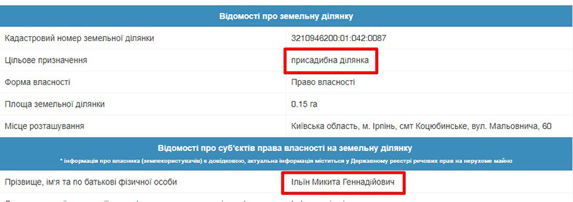 Земельные участки прокурора находятся в Киеве, Ворзеле, Коцюбинском и Святопетровском (Киево-Святошинский район).
