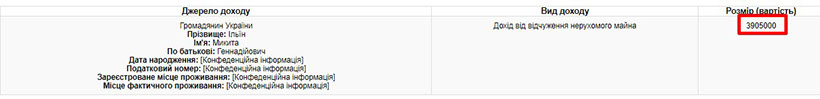 В декларации прокурора за 2015, 2016 и частично за 2017 годы Никита Ильин задекларировал 198 тыс грн дохода от работы в прокуратуре и еще 7,4 млн грн от продажи имущества.