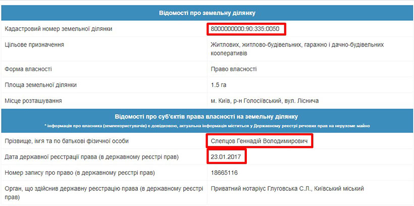 До сих пор в Реестре прав собственности собственником этого объекта значится Никита Геннадьевич. Однако в его декларации эту недвижимость мы не нашли. Очевидно, этот факт должен быть проверен компетентными органами.