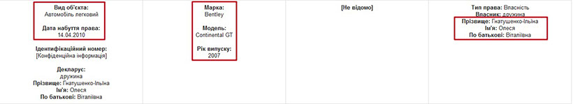 В декларации прокурора за 2015 год была еще Bentley Continental GT 2007 года выпуска, которая принадлежала его жене – Олесе Витальевне Гнатушенко-Ильиной. Однако в декларации за 2016 это авто, как и жена, отсутствуют. В реестре судебных решений нам удалось узнать, что брак был расторгнут в мае 2016 года.