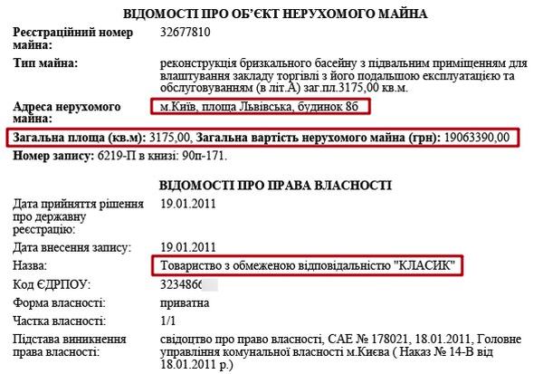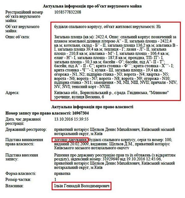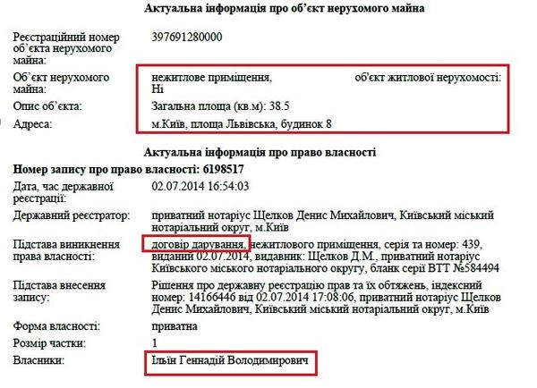 Есть в собственности Геннадия Ильина и ¼ нежилых помещения по улице Богдана Хмельницкого, 10, их площадь 329 м², а указанная стоимость – 415 тыс. грн. Также он владеет помещением на Львовской площади, 8-А, в скандальном торговом центре, к строительству которого он также причастен.