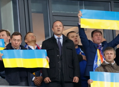 В частности, парламентарий от "Народного фронта", внештатный советник главы Министерства внутренних дел Украины Антон Геращенко и его жена очень активно болели и кричали. Был среди фанатов футбола и сам Министр Арсен Аваков. С ним также был замечен его сын Александр.