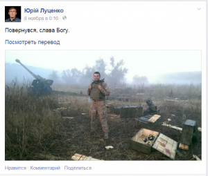 «Вернулся, слава Богу...», — подписал один из снимков сына, сделанный в начале ноября, председатель фракции «Блок Петра Порошенко» Юрий Луценко.