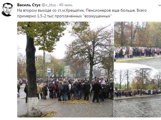 Так, пользователь Василий Стус в своем Twitter показал снимки, на которых "акционеры" собираются в кучки в ожидании "инструктора" с деньгами.