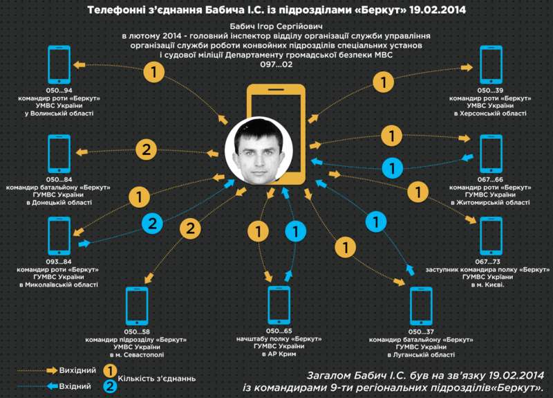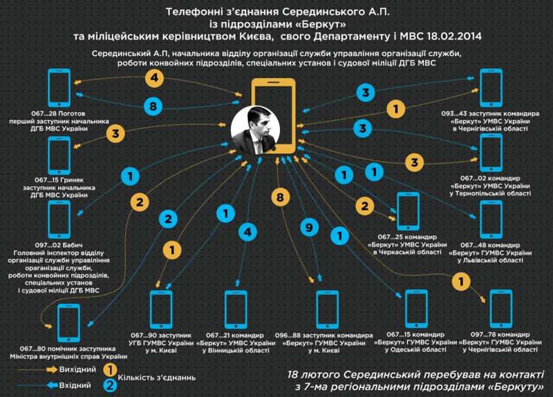 Обнародованные прокуратурой примеры переговоров Серединского и Бабича с руководителями «Беркута» 18 и 19 февраля 2014 года