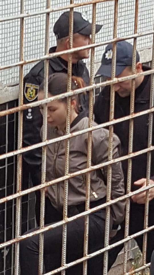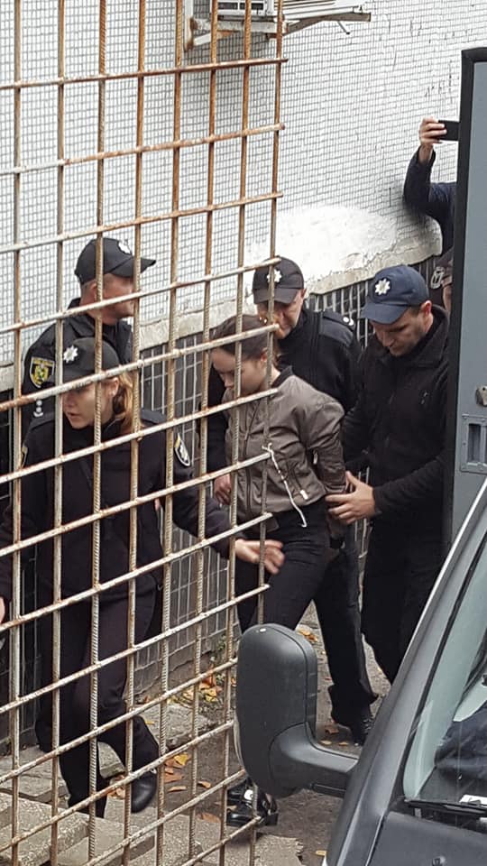 Девушку доставили в Киевский районный суд Харькова в наручниках и под конвоем.