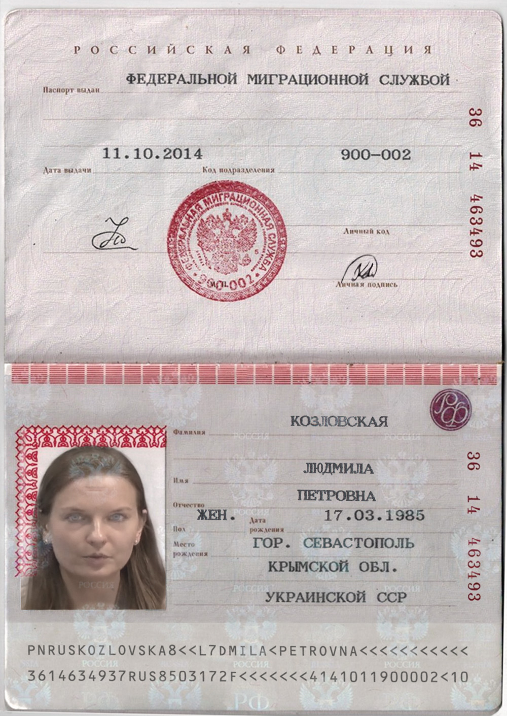 Более того становится известно, что Козловская до сих пор является гражданкой Российской Федерации и не выходила из него. По крайней мере, об этом свидетельствует официальный документ - копия ее паспорта, выданного Федеральной Миграционной службой России.