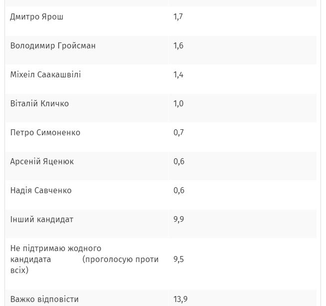 Показатель поддержки Порошенко значимо уменьшился: с 12,8% в сентябре до 9,9% в октябре (среди респондентов, которые будут участвовать в выборах).