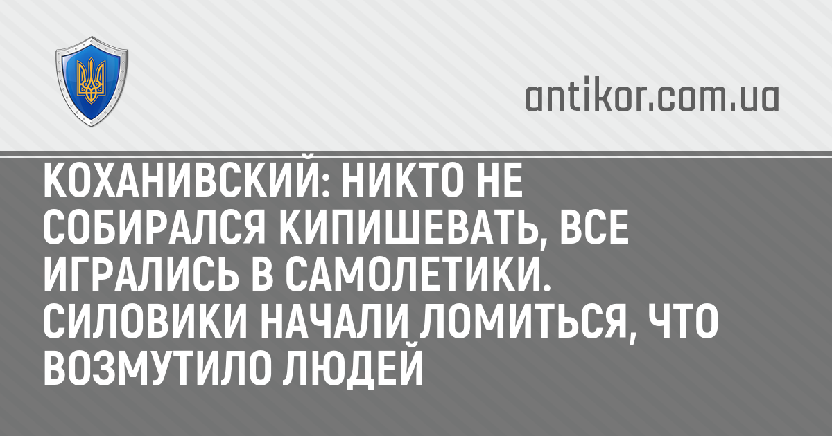 Коханивский: Никто не собирался кипишевать, все игрались в самолетики. Силовики начали ломиться, что возмутило людей