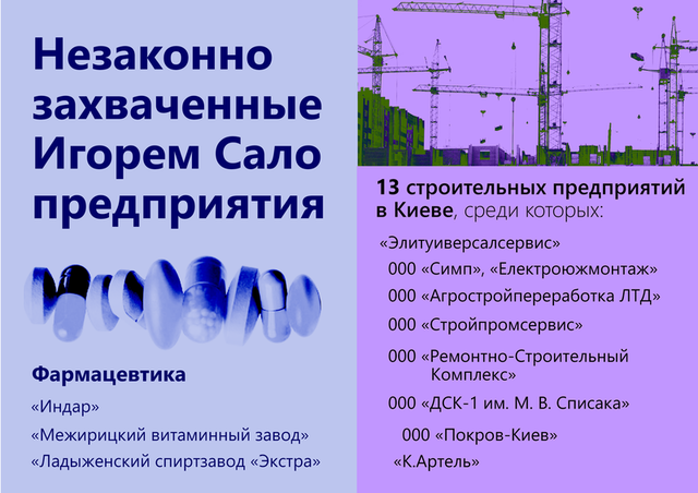 Второй шаг – продвижение на руководящие должности объекта «своих» людей. В основном, это юристы бизнесмена, на которых он возлагает «высочайшую» миссию – внести раздор в коллектив и расшатать экономическую базу предприятия. А потом эти люди, имея доступ к самой важной документации объекта, с помощью различных профессиональных приемов и махинаций, «отжимают» предприятие у законных владельцев. Причем, по документам – все в рамках закона. Так уже было с многими «отжатыми» Сало предприятиями – инсулиновым заводом «Индар», «Межирицким витаминным заводом», Ладыженским спиртзаводом «Экстра», 13 крупных столичных строительных компаний и другими.