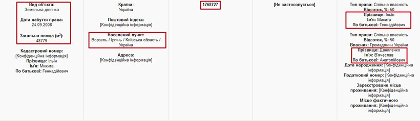 У ще одному розслідуванні йдеться про те, що син заступника генпрокурора Анатолія Даниленка є співвласником майже 5 га лісу по вул.В.Жовтня, 114 у селищі Ворзель Київської області. Окрім В’ячеслава Даниленка другим співвласником є прокурор Микита Ільїн, який клопотав про зміну цільового призначення цієї землі з метою її забудувати.