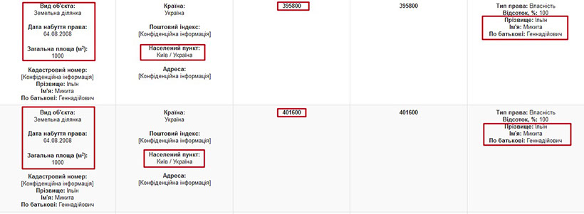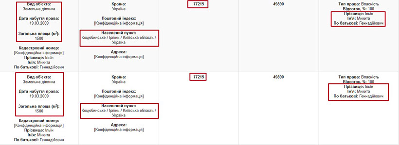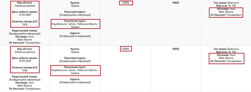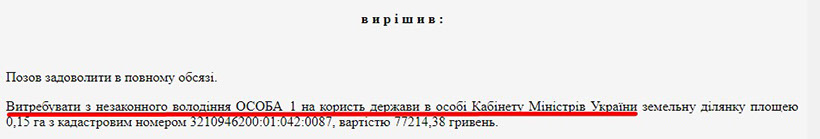 У реєстрі речових прав на нерухоме майно ці земельні ділянки відсутні, але про них та історію набуття може розказати Реєстр судових рішень. Саме з нього стає відомо, що йдеться про землі національного природного парку «Голосіївський» біля Коцюбинського.