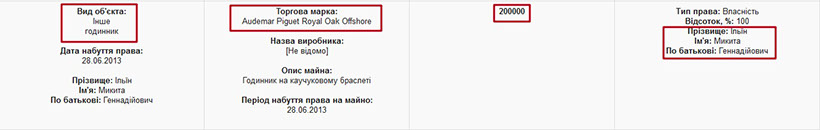 Також прокурор задекларував годинник Audemar Piguet Royal Oak Offshore вартістю 200 тис. грн.