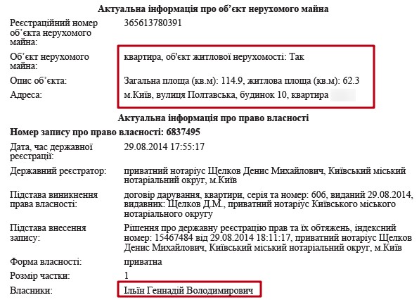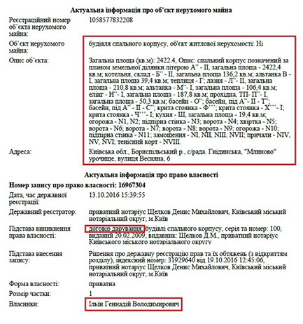 До сьогодні у Реєстрі прав власності, власником цього об’єкта значиться Микита Геннадійович. Однак у його декларації ми не знайшли цієї нерухомості. Очевидно, цей факт має бути перевірений компетентними органами.