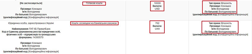 Единственное, чем владеет прокурор, согласно его декларации — это его личные сбережения. В собственности Владимира Комашко есть 10 тыс долл. наличных и 762 грн на счету в банке.
