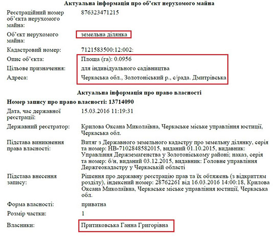 Также в собственности госпожи Анны — земельные участки в Черкасской области. В самих Черкассах землю в заповедной зоне имеет и ее муж, а на ней уже возведен небольшой дом.