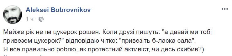Блогер Алексей Бобровников заявил, что не ест конфет «Рошен» уже год назвав себя «протестным активистом».