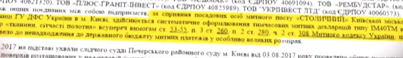Это не единственное уголовное дело НАБУ, в котором фигурирует киевская таможня. Другое расследование касается фактов злоупотребления властью и служебным положением исполняющим обязанности начальника киевской таможни ГНС. Кроме НАБУ, злоупотребления столичной таможни, а именно служебных лиц таможенного поста «Столичный», с недавнего времени изучает Управление по расследованию особо важных дел ГПУ.