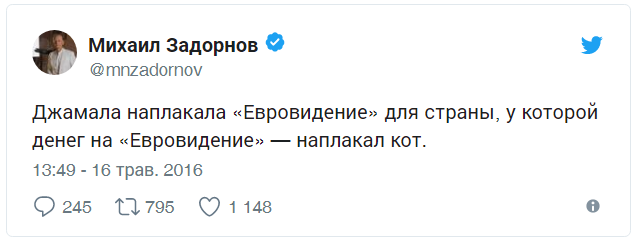 "Джамала наплакала "Евровидение" для страны, у которой денег на "Евровидение" — наплакал кот".