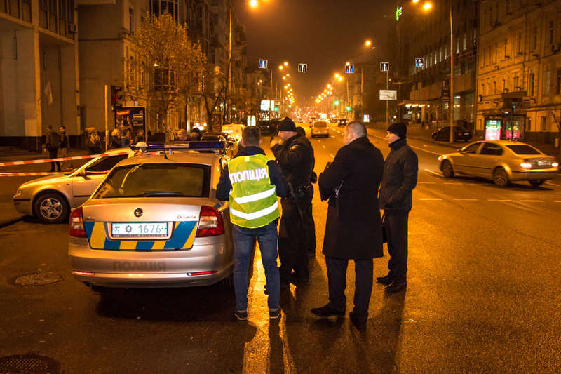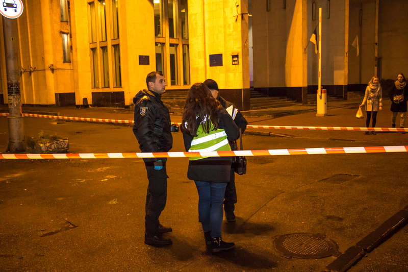 Возле стадиона «Олимпийский» около 21:00 на улице Саксаганского, 1  пострадавший вышел из офиса и направлялся в свое авто. Возле машины на него напал мужчина с молотком. Охранник потерпевшего стал отстреливаться и ранил злоумышленника в ногу, когда тот пытался убежать.