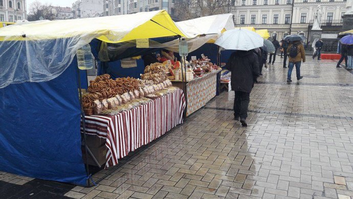 Как отмечает УП, вместе с тем на Михайловской площади проходит ярмарка, которая, по словам его участников, была организована Шевченковским районом, якобы к 80-летию района. Решение о проведении ярмарки было объявлено накануне вечером, а чтобы собрать торговцев, их специально обзванивали.