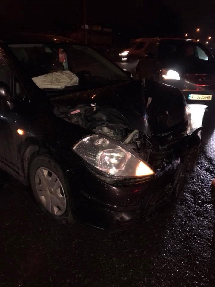 "Сегодня попал в ДТП на ул. Стеценко в Киеве. Пьяный водитель на Mazda выехал на встречку и столкнулся в лоб с Mitsubishi. Mitsubishi отбросило на меня", - написал он.