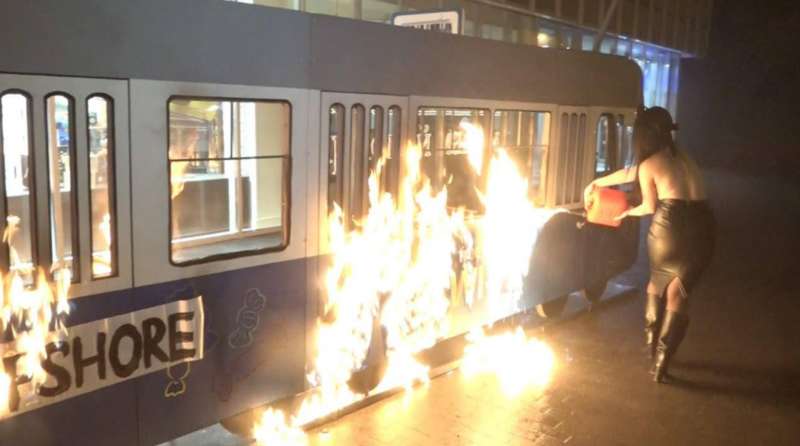 В Виннице Femen сожгли "трамвай Порошенко в оффшоры"