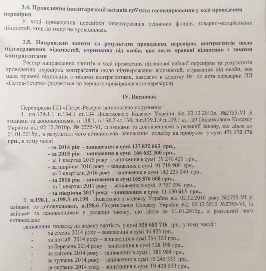 Податкова перевірка, яка була ініційована в цьому кримінальному провадженні, показала зовсім іншу сторону медалі. Отже, підприємства, які реалізовували скраплений газ на внутрішньому ринку ТОВ «Укргазпетроліум», ПП «Петра-резерв» сховали від державного бюджету понад 1,3 млрд. гривень. Хтось більше, хтось менше, але факти на лице. До речі акти цих перевірок готові і їх із пристрастю читають ці підприємці.