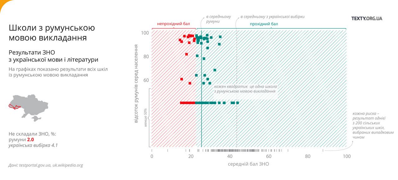 Румунія не так активно вкладається у румуномовну освіту в Україні і, можливо, тому румунські випускники більш лояльні до української ЗНО.
