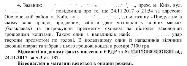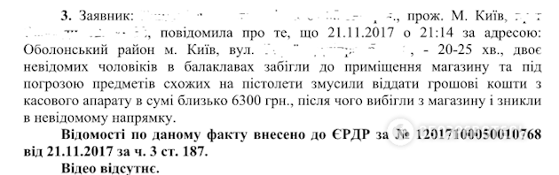 Об этом идет речь в сводке о фактах нападения на магазины в Оболонском районе Киева Отдела криминальной полиции Оболонского Управления полиции ГУ НП в Киеве, которое оказалось в распоряжении "Обозревателя".