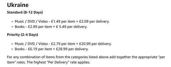 Компания также предоставила актуальные тарифы на доставку товаров в Украину: