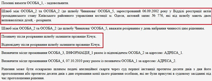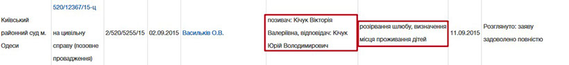 В судебном реестре нам также удалось найти интересный факт: 11 сентября 2015 года брак между Юрием и Викторией Кичук был расторгнут. Однако в декларациях за 2015 и 2016 годы и до сих пор указано, что они были женаты.