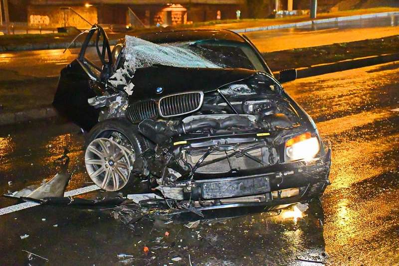 Передняя часть машины была полностью смята, двигатель сорван с подушек, вырвана правая полуось вместе с колесом, а запчасти разбросаны по улице. Полицейские обнаружили внутри авто патроны для травматического оружия.