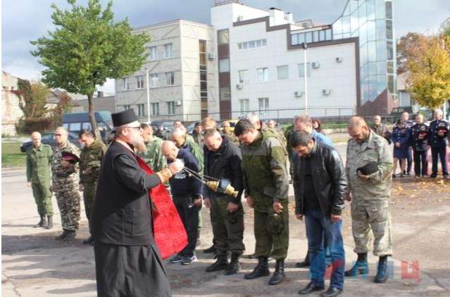 Освящение памятного места погибшим боевикам на блокпосту п.Юбилейный под Луганском.