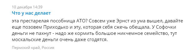 "Эта престарелая пособница АТО? Совсем уже Эрнст из ума вышел, давайте еще позовем Приходько и эту, которая себя сжечь обещала", - пишут россияне.