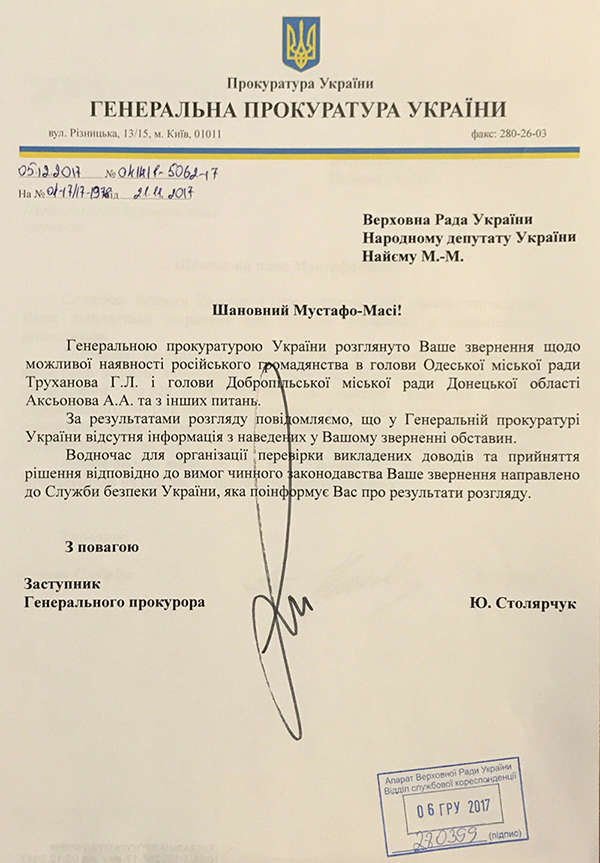 Теги: ГенпрокуратураФСБ РФРоссийское гражданствоАксенов АндрейТрухановНайем МустафаГражданствоЛуценкоГрицак Василий