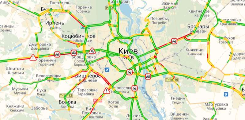 В сторону Киева едва едет и Гостомельское шоссе, частично заблокировано Одесское. В обе стороны "стоит" Кольцевая дорога - там, где разворачиваются в сторону Киева.