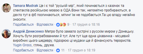 «Metro было мало встрече с «русским миром» в Донецке. Хотят быть разграбленными и здесь. Но здесь еще одна изюминка — местный производитель этого шедевра, подозреваю эти му***и еще и финансируют террористов», — пишет Андрей Денисенко.