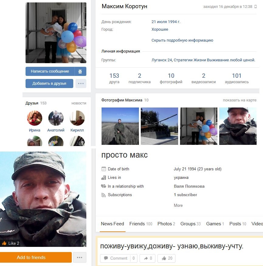 Имя боевика - Максим Коротун. Он умер в возрасте 23 лет в результате неосторожного обращения с гранатой.