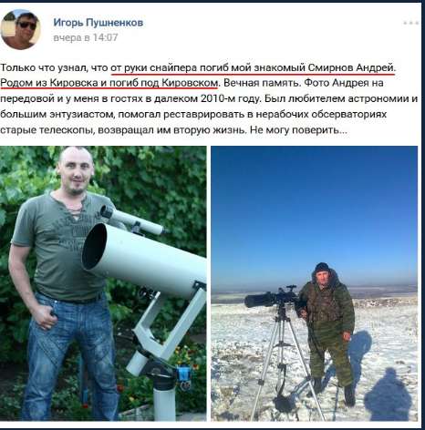 На Донбассе погиб очередной террорист, который воевал за псевдореспублику "ЛНР", - Андрей Смирнов.