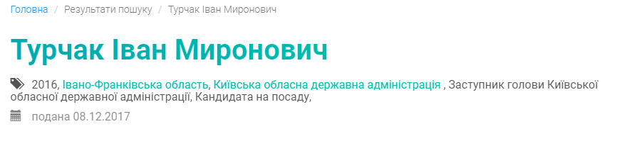 В качестве кандидата на должность замглавы Киевской ОГА Турчак 8 декабря этого года подал декларацию о доходах.
