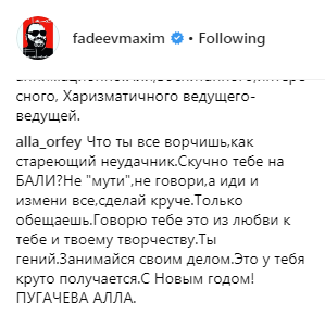 В комментариях к этому посту Пугачева написала, что продюсер "ворчит, как стареющий неудачник".