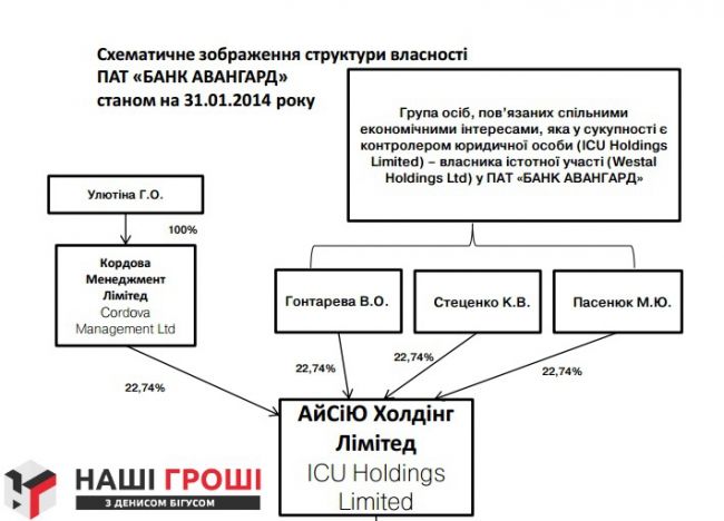 Глава НБУ заявляет, что с 2014 г. не поддерживает деловых контактов со своими партнерами. Дескать, она продала свою долю в ICU Holdings Limited (22,47%) и теперь просто частями получает оплату, разбитую на пять траншей. В конце декабря НБУ сообщил, что Гонтарева получила третий транш от бывших партнеров в размере 52 млн. грн. Хотя в 2014 г. она получила 24,3 млн грн, а в 2015 г. – 23,5 млн грн. Почему выплаты, которые получает Гонтарева от своих якобы бывших партнеров неожиданно выросли более чем в два раза? Курсовой разницей это не объяснить. Невольно напрашиваются подозрения, что Гонтарева заинтересована в успехах своей бывшей компании. В июне 2016 г. сама Гонтарева призналась в интервью: «Я очень хочу, чтобы она хорошо развивалась, они мне еще частями должны доплатить денег. За проданный мой пакет они мне платят в рассрочку. Два транша заплатили, и еще три меня ждет. Поэтому я не против, чтобы они хорошо развивались».