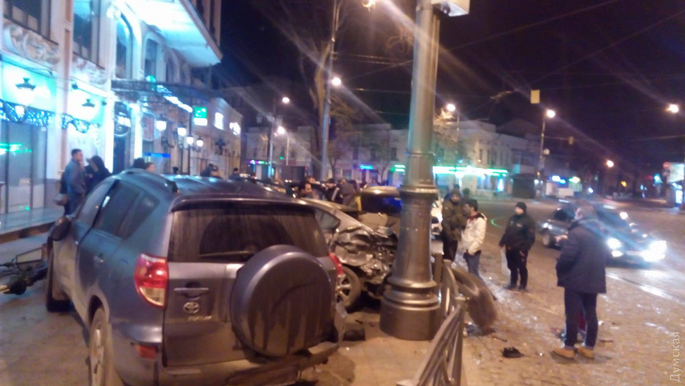 В центре Одессы «Джип» на скорости протаранил три припаркованные машины
