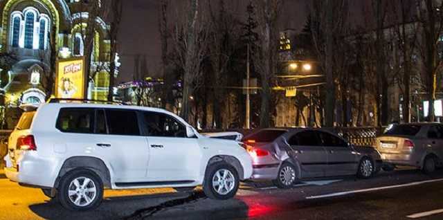 Вечером, 6 января, в Киеве на перекрестке улицы Леонтовича и бульвара Тараса Шевченко произошло тройное ДТП. На светофоре, прямо перед Владимирским собором, столкнулись Chevrolet Aveo, Peugeot и Lexus.