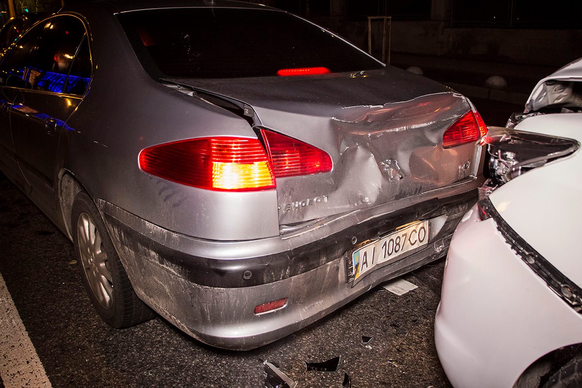По словам водителя Chevrolet Aveo, сзади в его автомобиль врезался Peugeot, который, в свою очередь, пострадал от столкновения с Lexus. В результате аварии у Chevrolet Aveo легкие царапины на бампере, а у Peugeot поврежден номерной знак, решетка радиатора и капот.