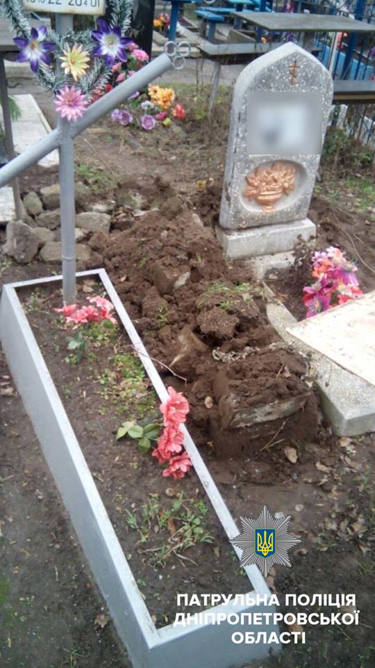 "Поступило сообщение о надругательстве над могилой на кладбище, расположенном по улице Костромской. Патрульные прибыли на место происшествия и обнаружили двоих неизвестных, которые разбивали кувалдой металлическое надгробие. Рядом стояла тележка, где уже лежали металлические части другого. Они объяснили, что им разрешили забрать надгробия. Впрочем, кто именно - сказать не смогли. Стражи порядка вызвали следственно-оперативную группу. Граждан задержали и доставили в Новокодацького отделения полиции для выяснения всех обстоятельств", - говорится в сообщении.