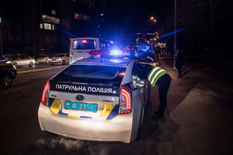 В Киеве на Харьковском шоссе три машины столкнулись из-за пьяных пешеходов