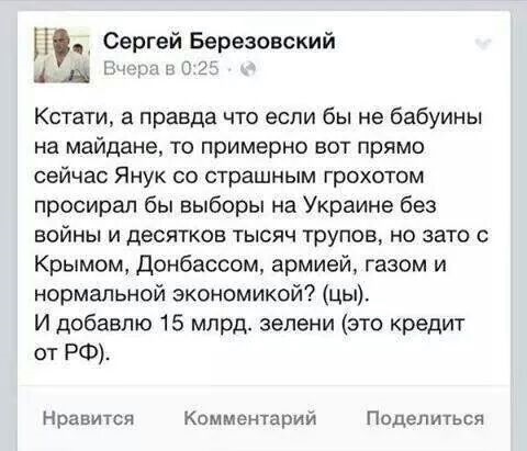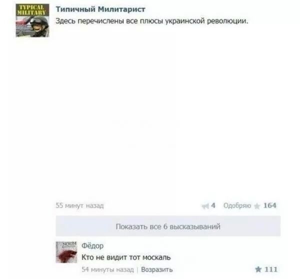 А все почему? Мало того, что хлеба на всех уже не хватает. Всем уже ясно, что дальше будет только хуже и вожак стаи ничего не может с этим поделать. Мало того, что он стал зачинщиком (первопричиной) кровопролитной войны, которая высасывает все соки, которая уже давно всех достала и на которую давно никто не хочет идти умирать. Так он еще и оказывается последней преградой для ее прекращения! Держа нас всех, по сути, в заложниках. Более того: преградой даже для возможного мирного возвращения мятежных территорий, на которых его свиту не признают, так как считают их самозванцами и путчистами. Единственной претензией восставших является, в сущности, именно эта команда «камикадзе». Не более того. Спрашивается: так нахрена нам тогда сдалось все это «счастье»?